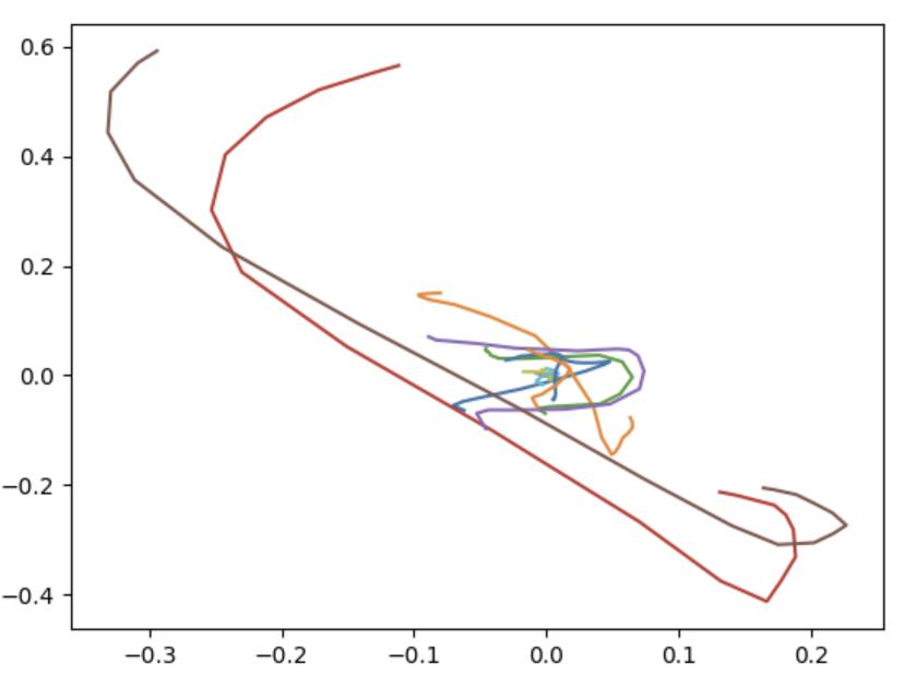 This not only serves as a compression step, but also means that subsequent detections of the gesture can be a bit more lenient, as exact curves do not need to be followed. This decision was made to ensure that, like previously mentioned, the gestures can be triggered by a range of people making similar, but not necessarily exact, replications of the movements.