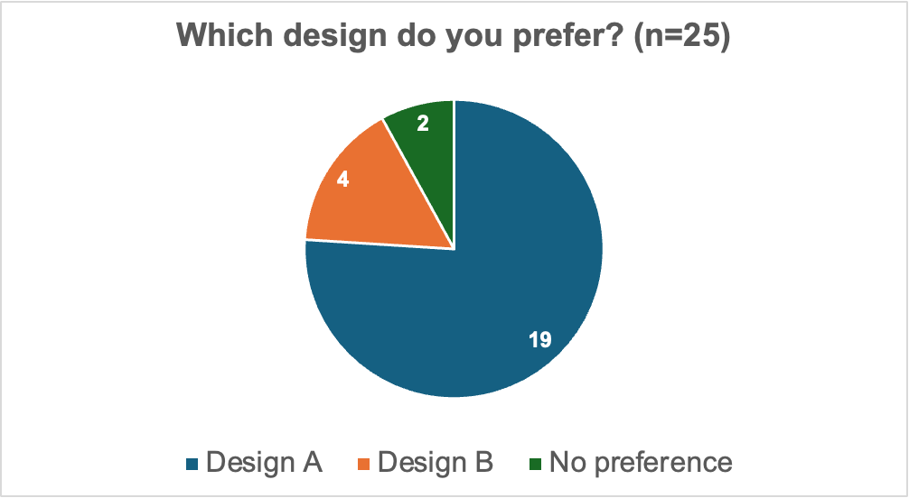 Design A was preferred as shown in Figure 1. Some users who preferred Design A wanted a clear response from the AI—similar to current AI chatbot designs such as ChatGPT and Copilot. This back and forth texting style interface would be more intuitive and recognisable.