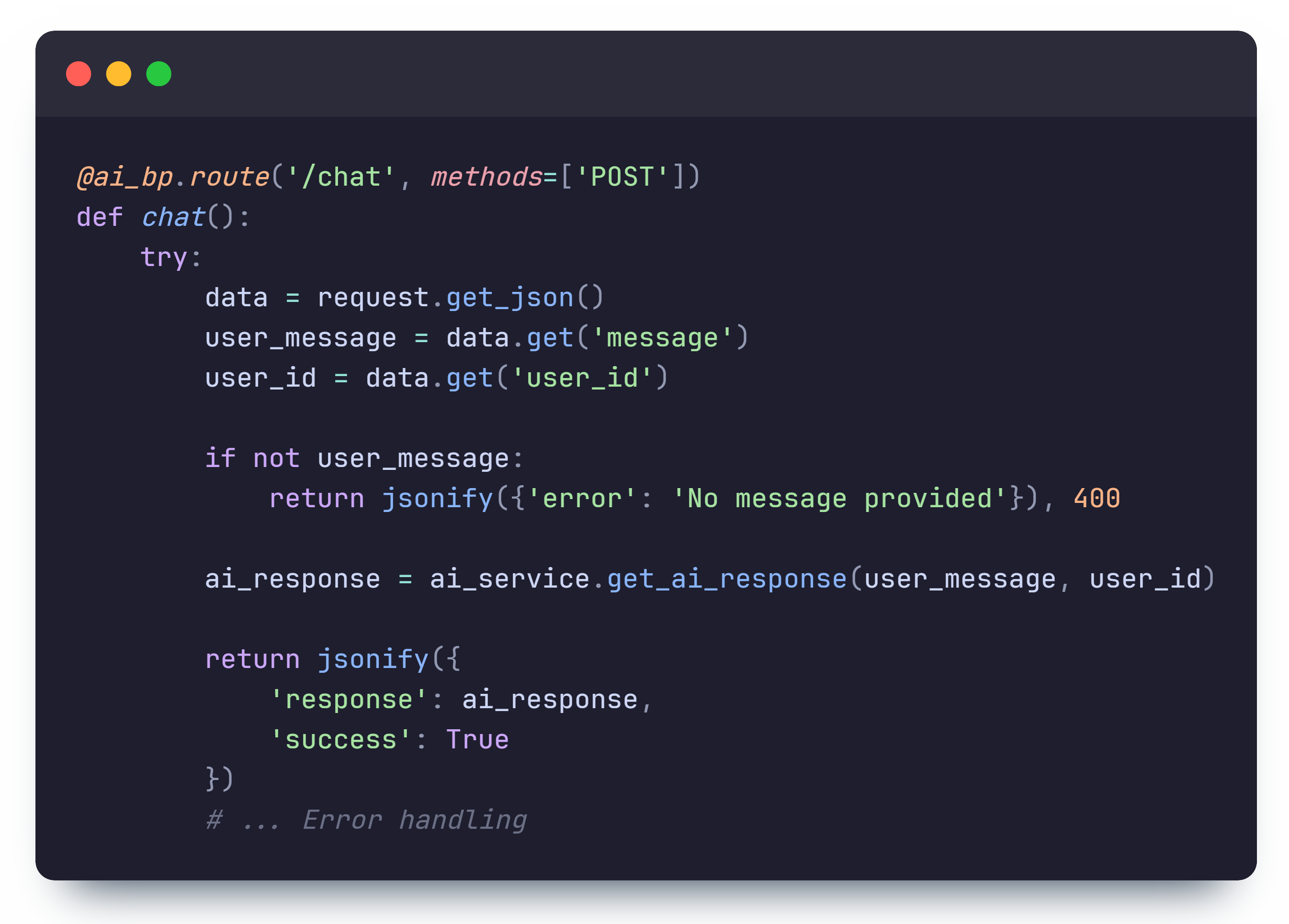 - Flask: Core web framework that handles API endpoints, routing, and business logic