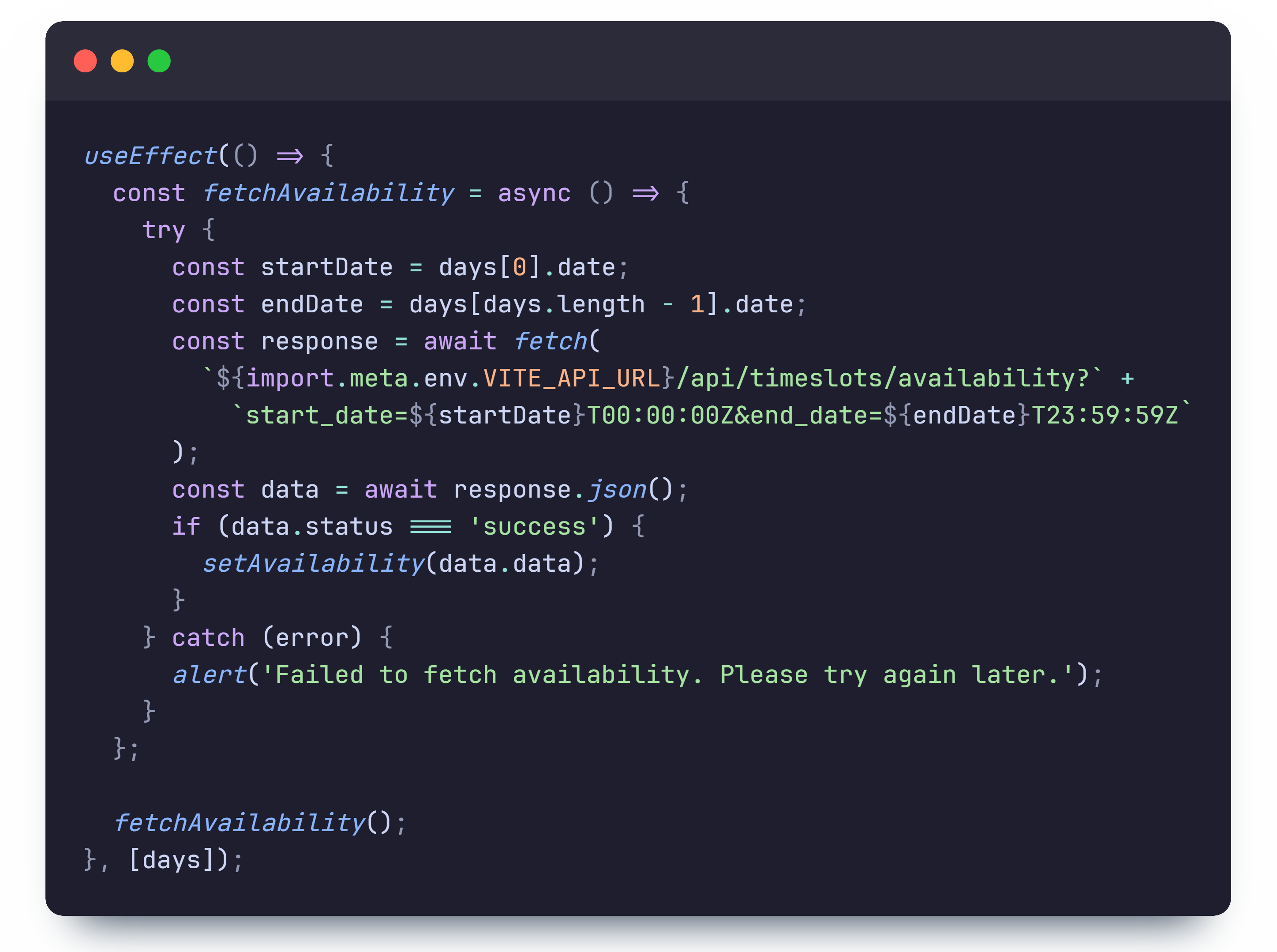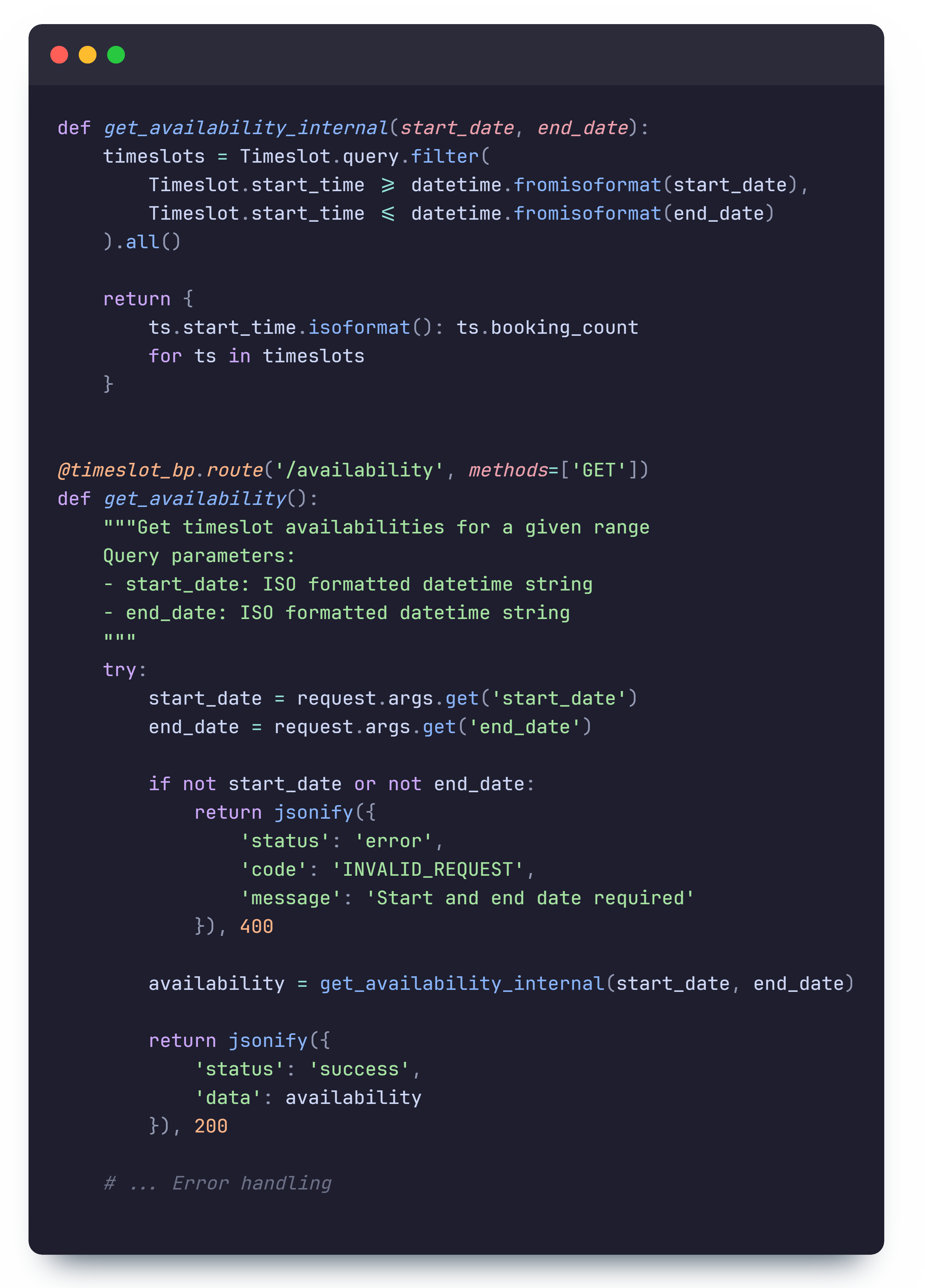 /api/timeslots/availability?start_date={start_date}&end_date={end_date} endpoint to fetch