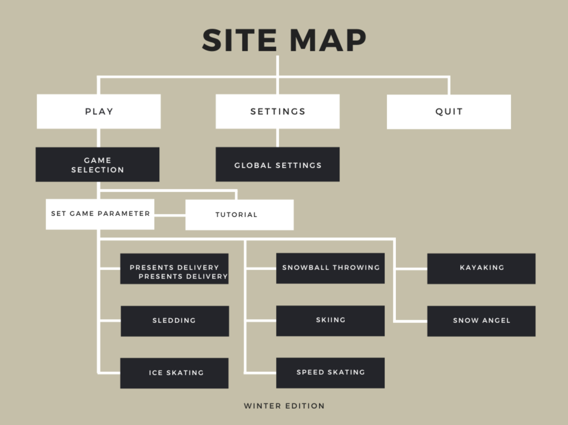 The game starts on a homepage, where the user can select from 8 different levels. Once a level is selected, it runs with a structure like those shown below, using scene-specific scripts to handle key functionalities. Players can also view a tutorial before starting a game.