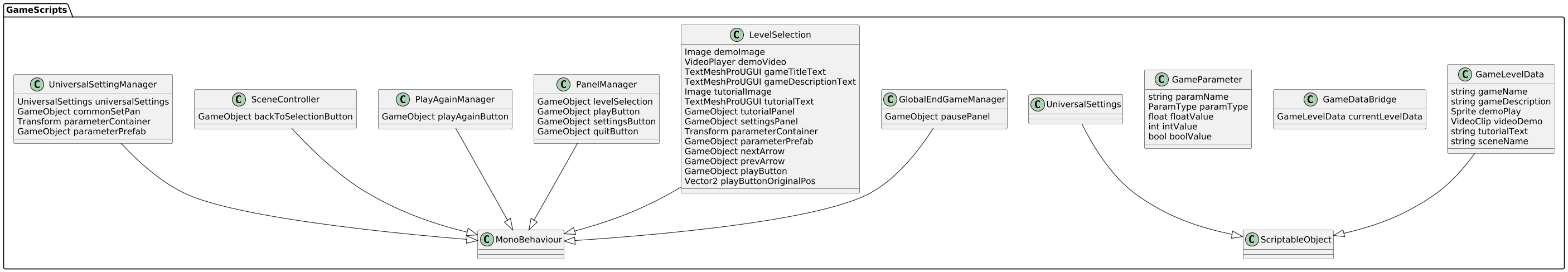 , are present in all scenes. These scripts handle scene transitions, game state management, and user navigation throughout the experience.