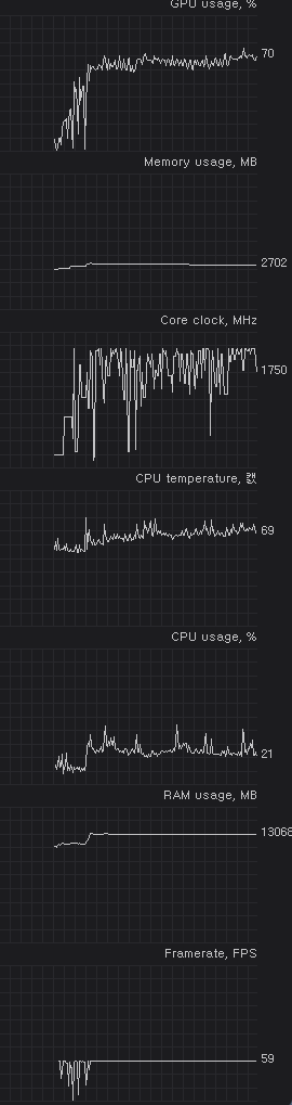 Through a base performance test on the test device, it can be seen that the game’s CPU performance and RAM usage are stable across all resolution settings. The system is able to maintain a consistent 60 FPS as long as the GPU usage remains below 100%.